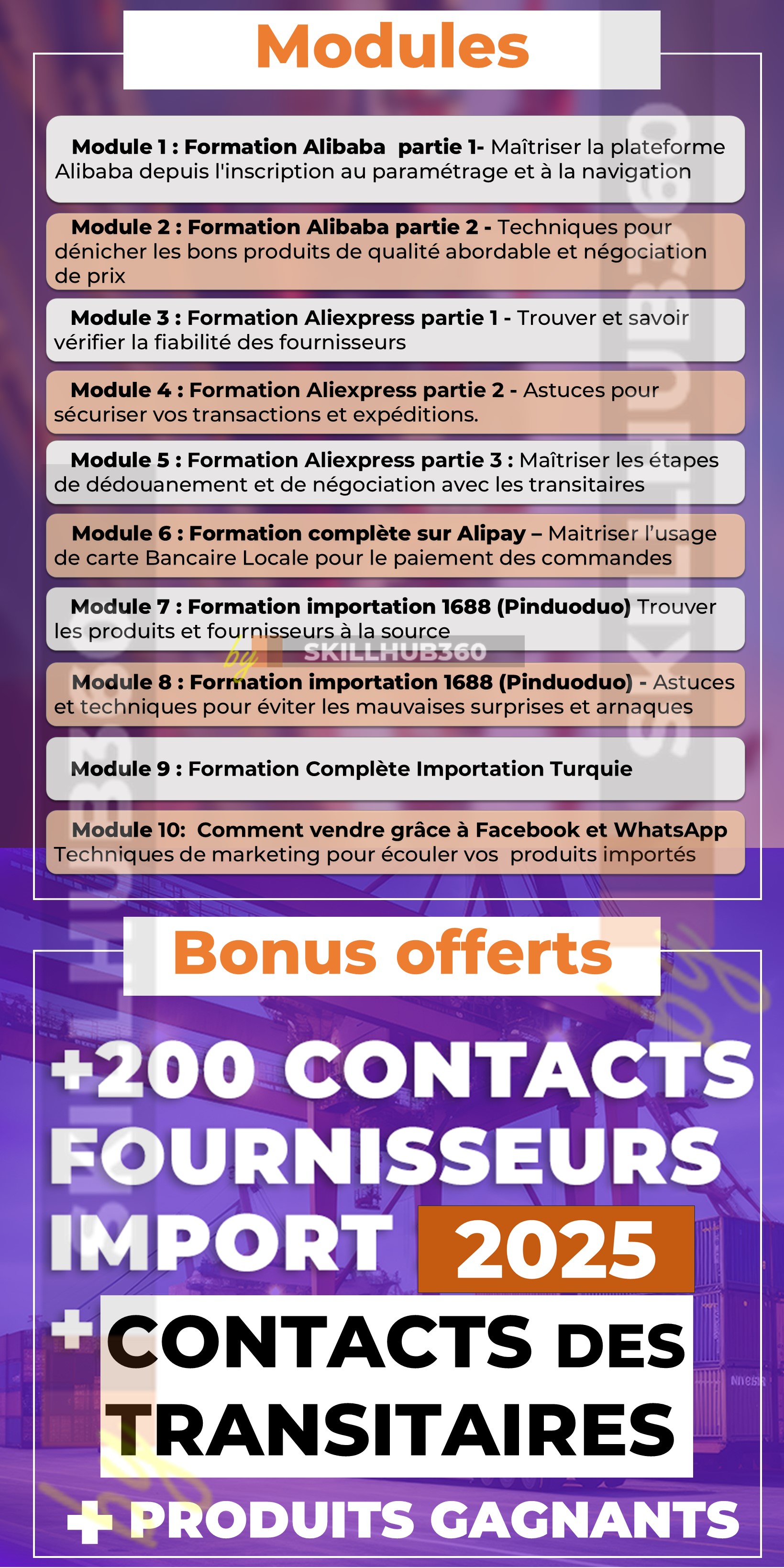 Pack formation complète pour maîtriser Alibaba et les techniques d’importation depuis la Chine, l’Inde, Taïwan et la Turquie vers l’Afrique + stratégies de vente de ses propres produits importés.