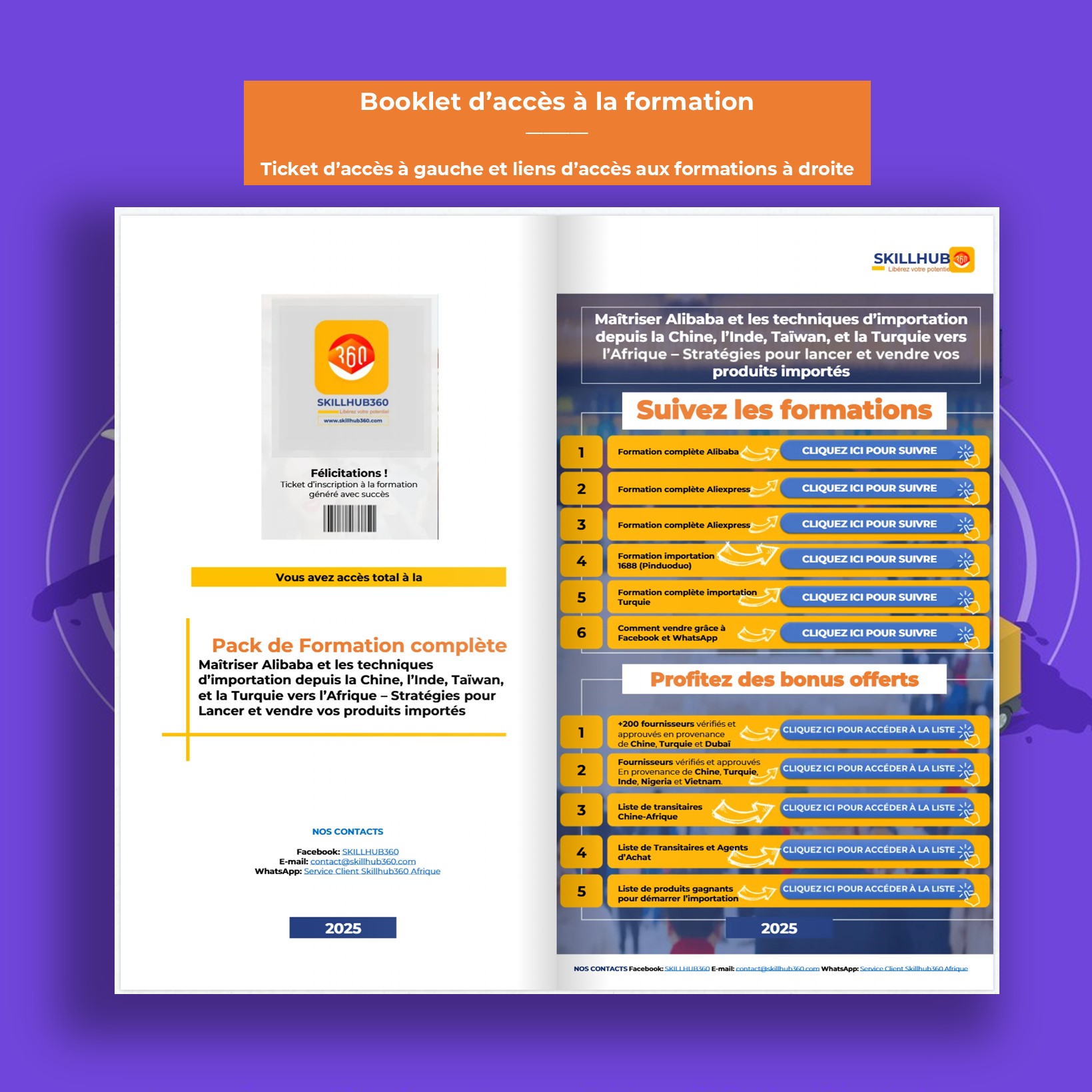 - Après paiement réussi, vous recevrez un lien pour télécharger instantanément le Booklet d'accès aux formations et commencer à votre rythme.